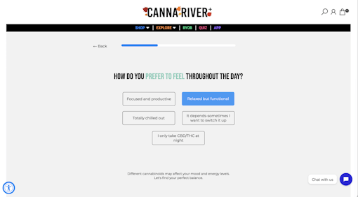 With so many options, finding the right hemp product can feel overwhelming, but Canna River takes the guesswork out of the equation. The site lets you filter options by product type or desired effect, while its interactive quiz offers a personalized way to zero in on the right fit. Naturally, we had to try it ourselves.