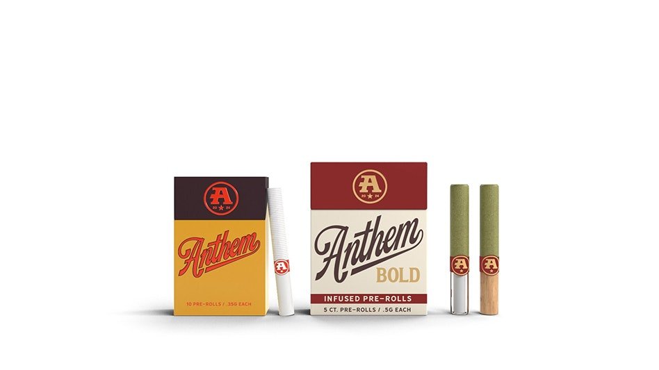 With Anthem Bold, customers and patients can choose from two bold flavor and product format experiences, in half-gram 5-packs and 1-gram single pre-rolls, with either a sweet wood tip or glass tip: