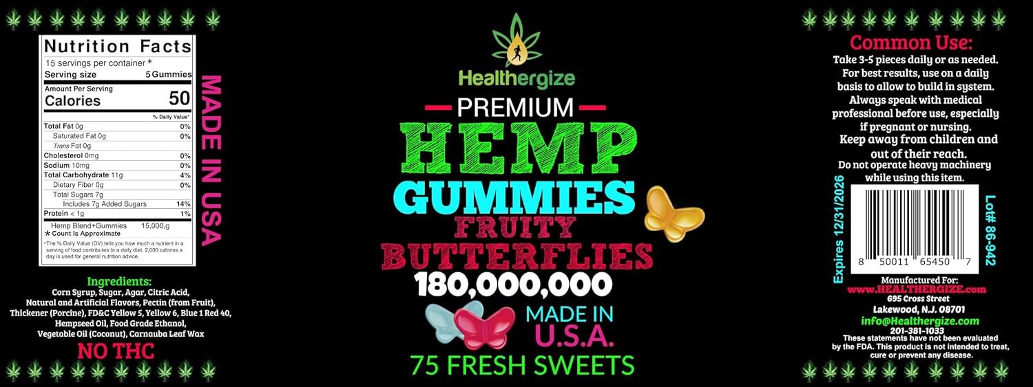 June 5, 20253PACK Hemp Gummies Premium Fruity Butterflies-for Sleep, Calm, Relax, Back-Natural Hemp Party-Made in USA