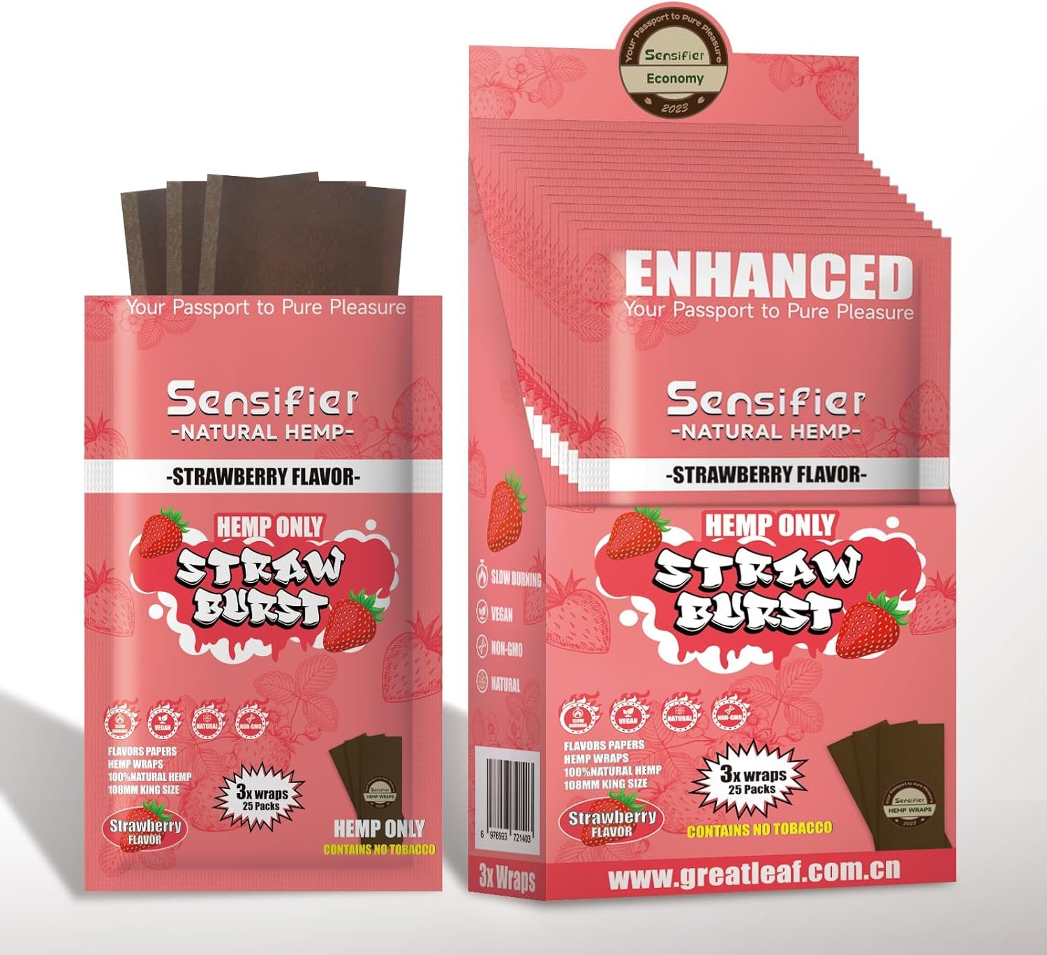 May 21, 202575 PACK Natural Hemp Wraps Sheet(Strawberry, 25 Packs of 3) – Non-GMO, brown