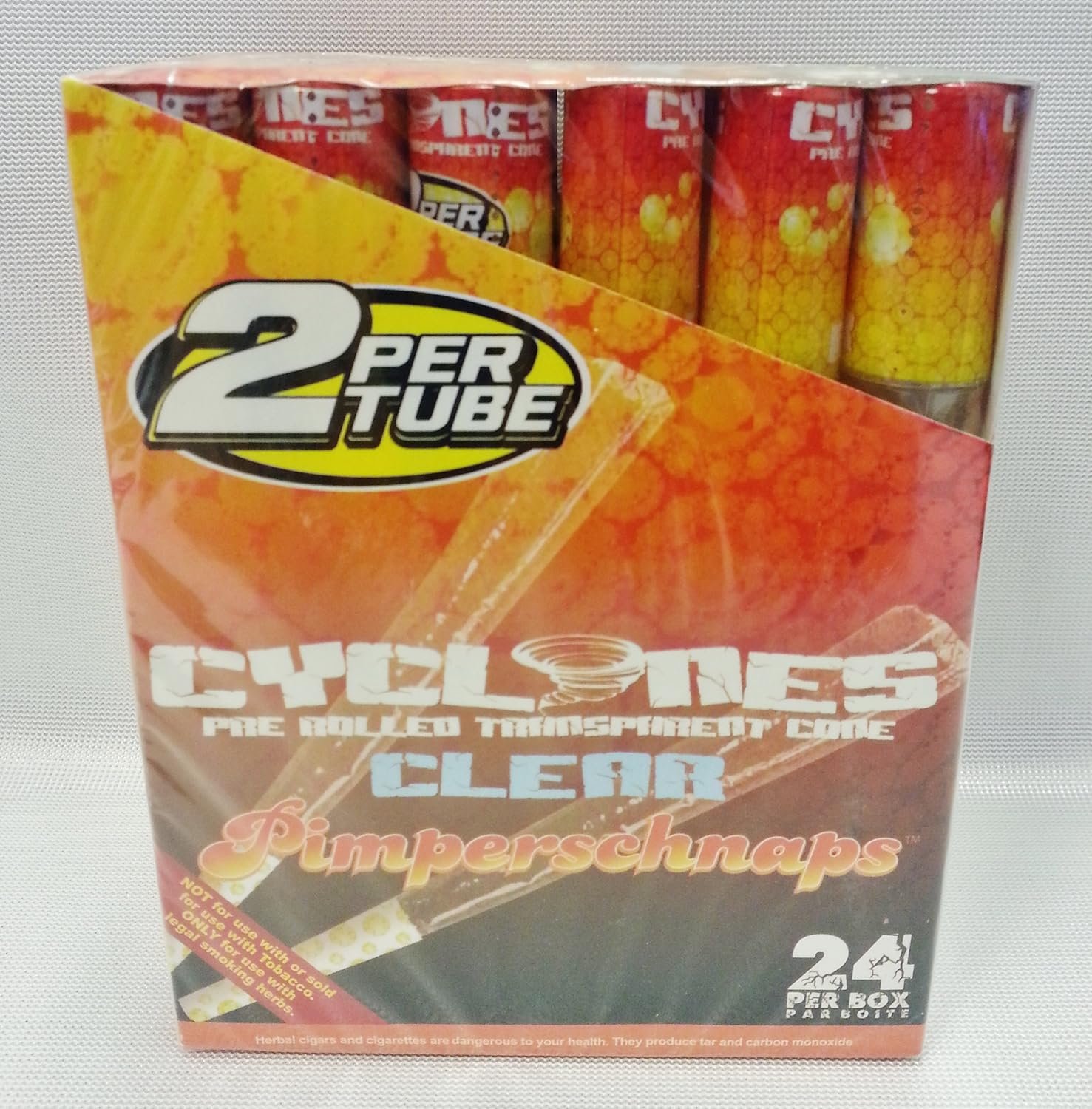June 8, 2025Box 24 Cyclones Pimperschnaps Flavored Pre Rolled Cones Clear Non Tobacco Cone
