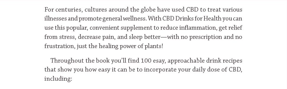 Unwind with the refreshing, relaxing beverages in CBD Drinks for Health and learn everything you need to know about using CBD oil with confidence and peace of mind.