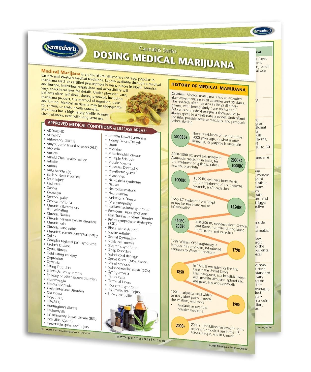 The chart covers in detail the history of medical marijuana, the various concepts to determine therapeutic values, influences over individual doses along with calculating a dose.