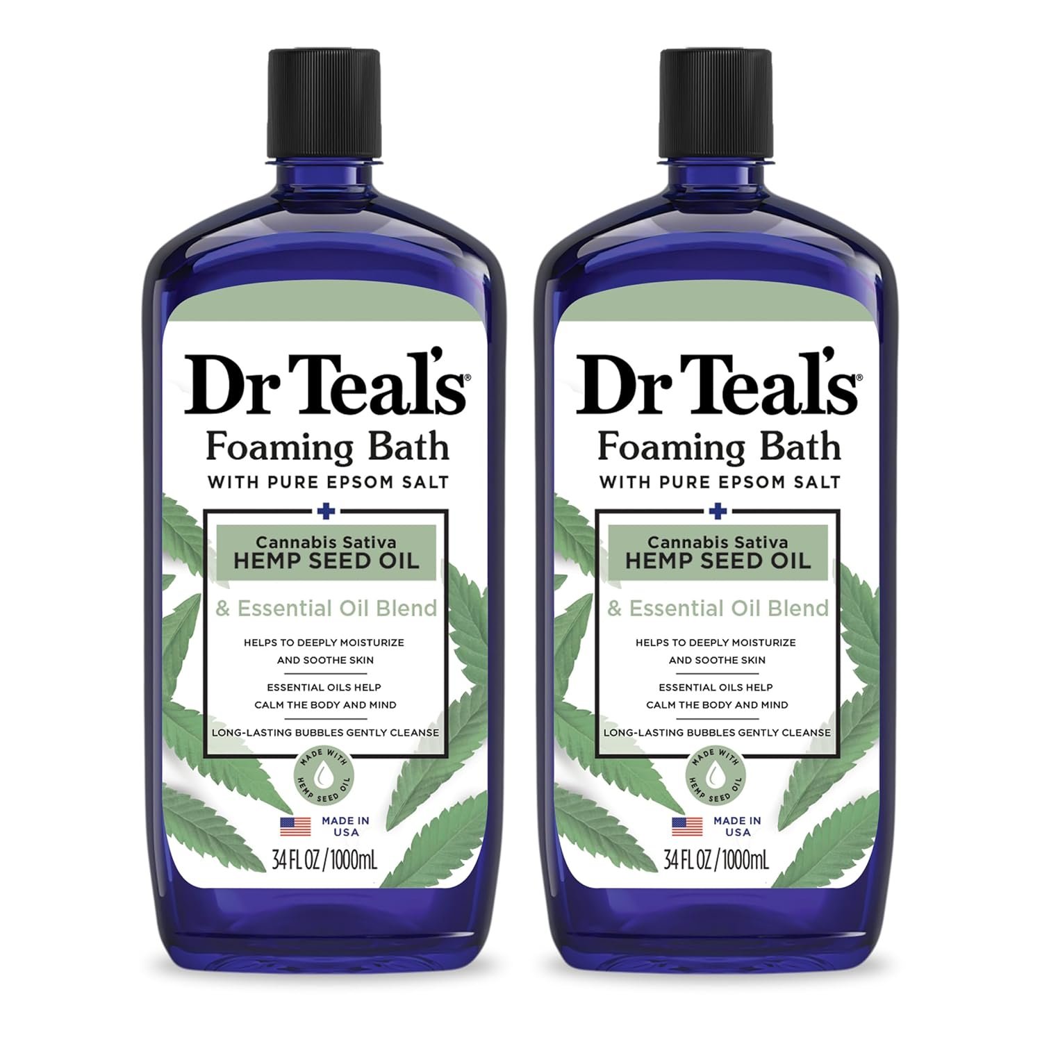 May 21, 2025Dr Teal’s Foaming Bath with Pure Epsom Salt, Cannabis Sativa Hemp Seed Oil, 34 fl oz (Pack of 2)