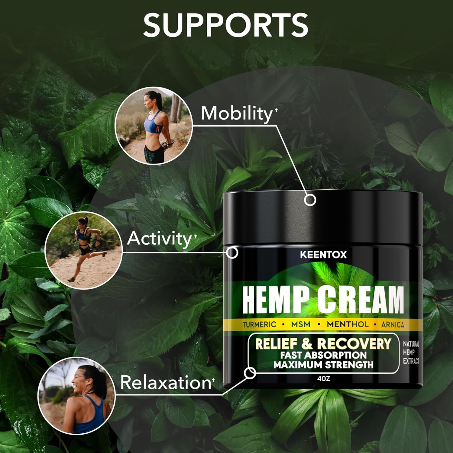 Skin Health Support: our maximum strength hеmp cream contains hemp oil, aloe vera, and arnica extract. This blend helps reduce fine lines & wrinkles and supports skin hydration, perfect for those who experience skin dryness.