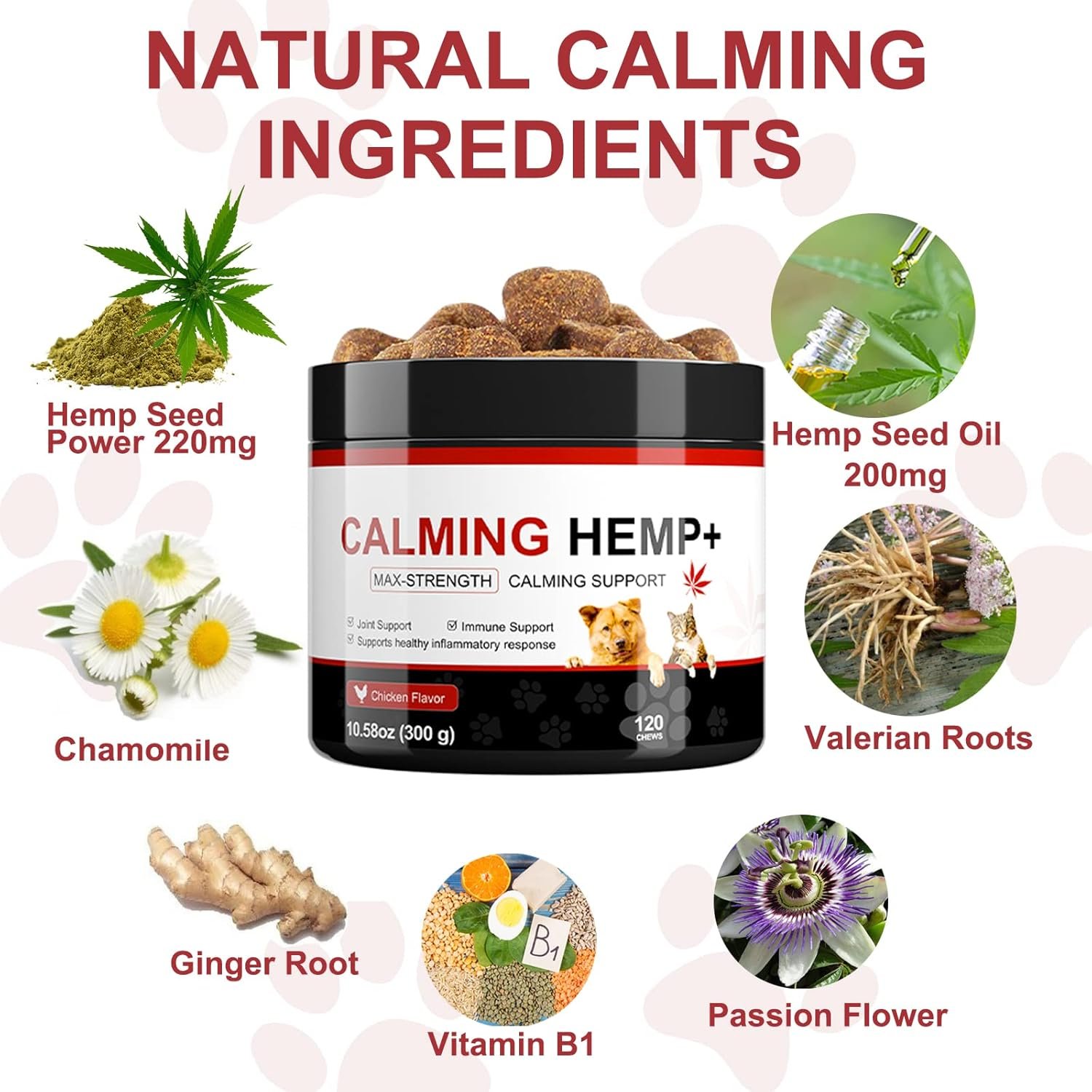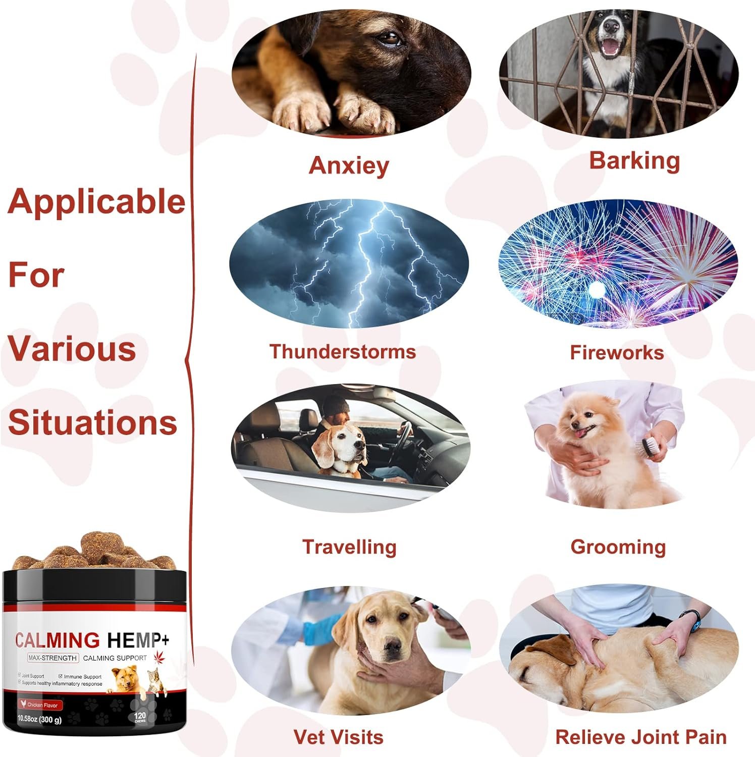 June 14, 2025Hemp Calming Chews for Dogs, Dog Anxiety Relief Calming Treats 100% Natural Ingredients Calming Treats for Dog, Aid with Barking, Thunderstorms, Separation, 120 Count, Chicken Flavor