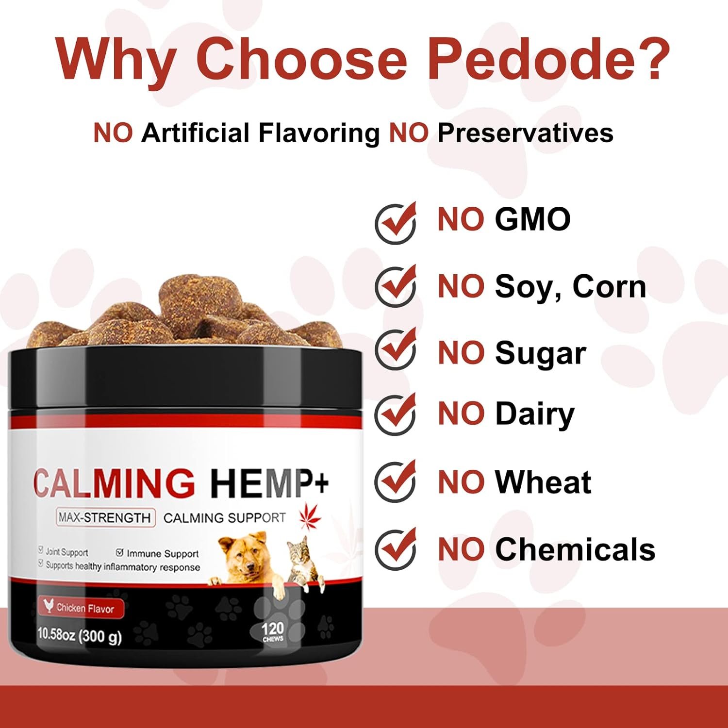 VET-RECOMMENDED – Pedode hemp calming chews are made of strict safety standards. These chews are vet-reviewed and it is a safe way to calm your dogs and cats. Try our calming chews for 2-3 weeks, if you do not see a difference in your dog, simply return them for a 100% no-hassle refund.