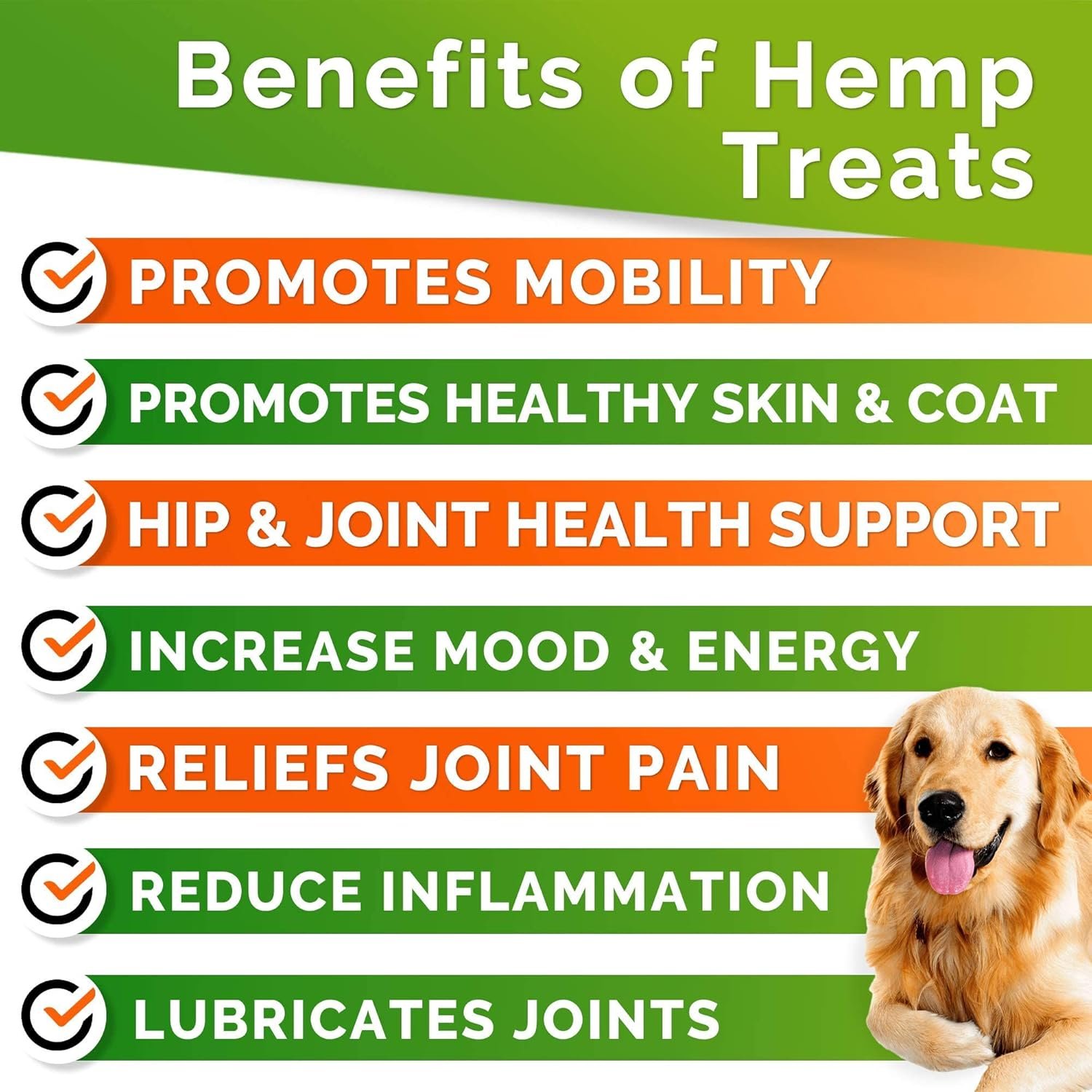 SUPPORT YOUR DOG’S HIP AND JOINT HEALTH – Our hip & joint chews contain organic HEMP SEED OIL. It contain nutrients, fatty acids, and protein – that boost skin and coat health.
