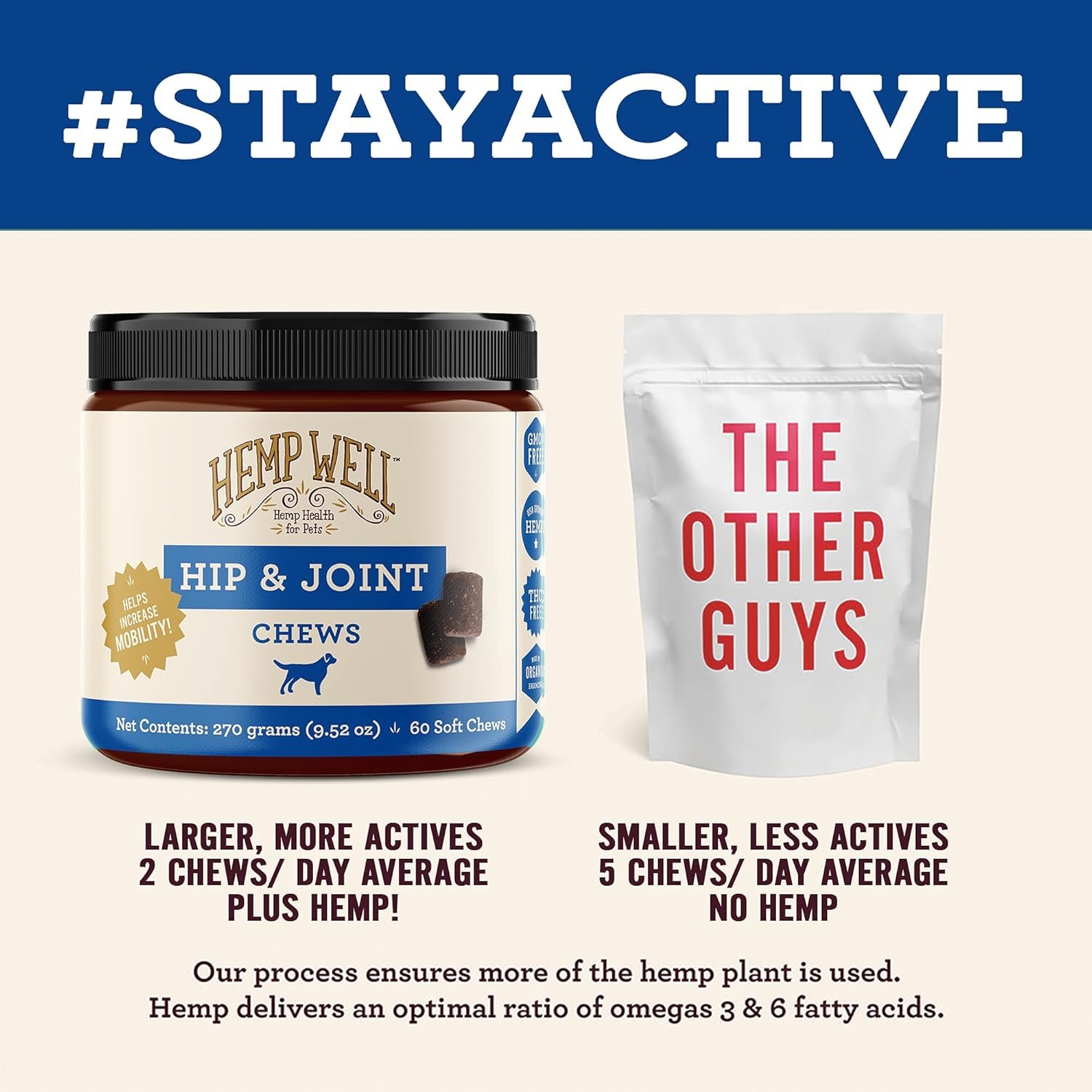 We didn’t just pixie-dust an existing product line. We started from the ground up and have built the leading dosage form animal supplement in the marketplace. Hemp Well is focused on pet and planet health. Compared with the competition, we are kind of a big deal. Our jar is 9.52 ounces. Average competitor is less than 7 ounces. Plus they are fresher and deliver more actives.