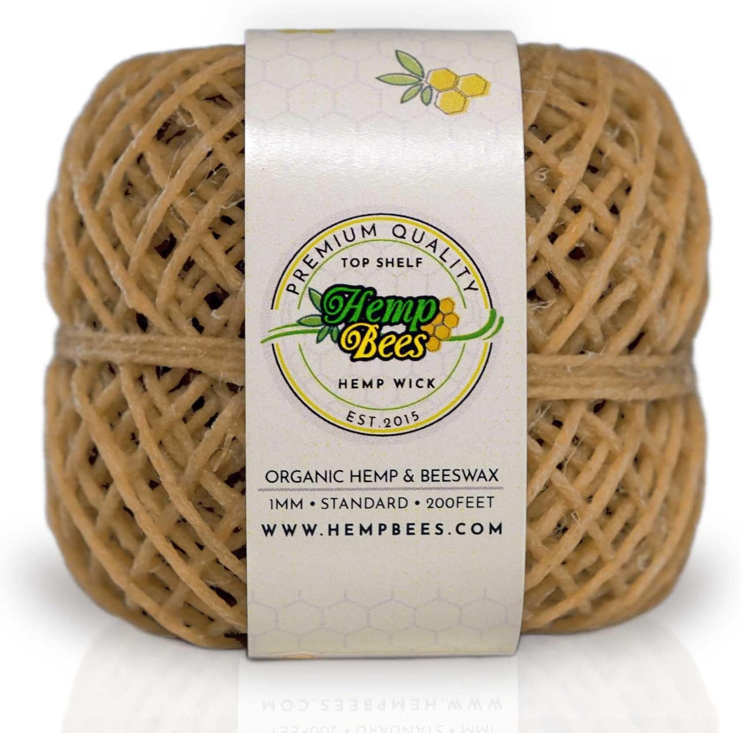 HempBees 100% Organic Hemp Wick with Natural Beeswax Coating Exceptional for Candle Crafting & Artistic Creations