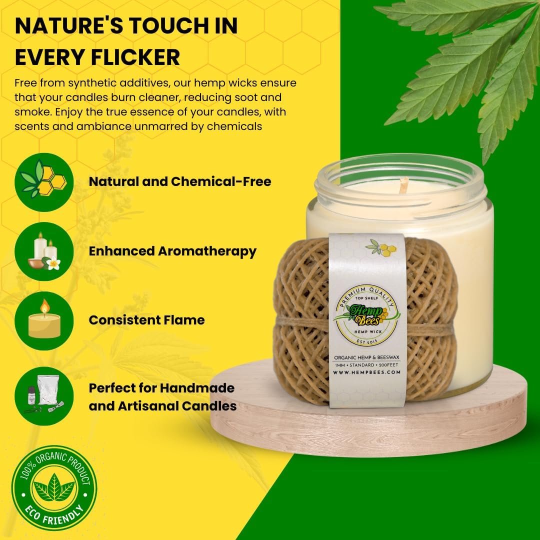 Standard 1mm Width: Ideal for delicate projects like tea lights, votives, and intricate art pieces. Hemp Bees100% Organic Hemp Wick with Natural Beeswax Coating Purity in Every Flame A Health-Conscious Choice