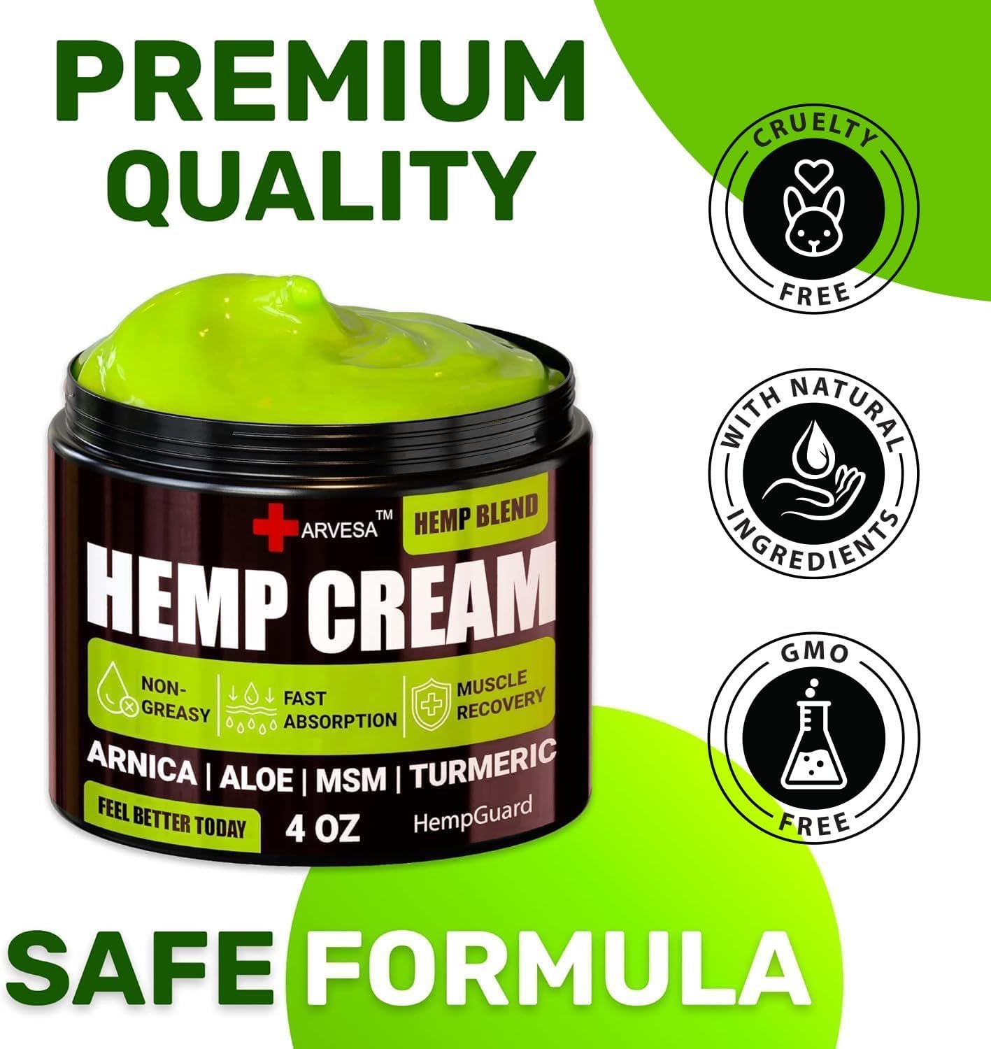 Superior Formula: Arvesa hemp cream is made with high-quality, non-GMO, and gluten-free ingredients. Its hemp seed extract formula soothes skin, muscles, and joints, supporting recovery and relief