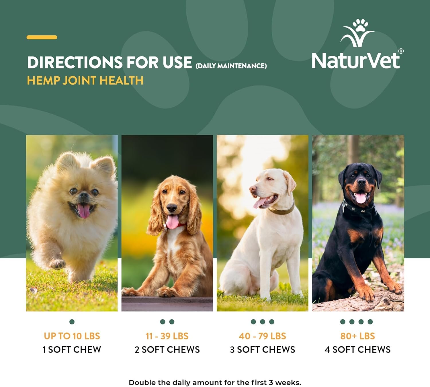 June 8, 2025NaturVet Hemp Joint Health, Joint Care Support Supplement for Dogs, Soft Chews, 60ct Made in The USA