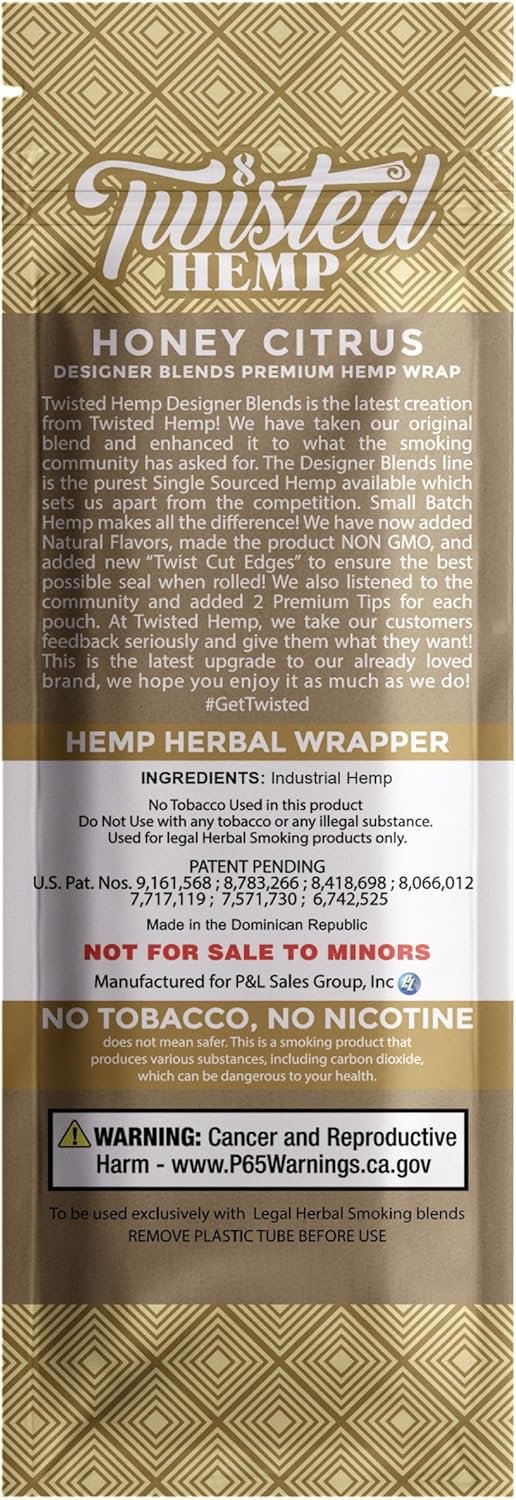 May 22, 2025Twisted Hemp Designer Blends Natural Premium Hemp Wraps 2 Count Per Sleeve Pack of 15 |30 Wraps Total (Honey Citrus)