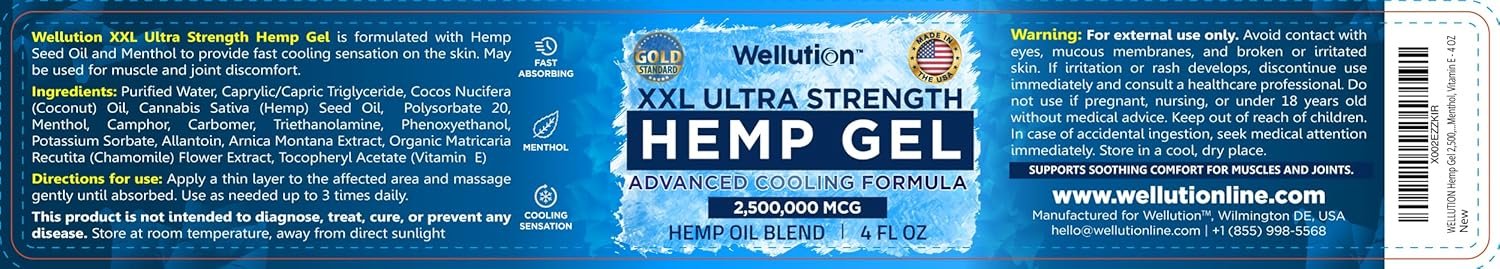 June 17, 2025Wellution Hemp Gel – 2,500,000 MCG – (4 Oz) with Hemp Oil Extract, Arnica, Coconut Oil, and Menthol – Made in USA