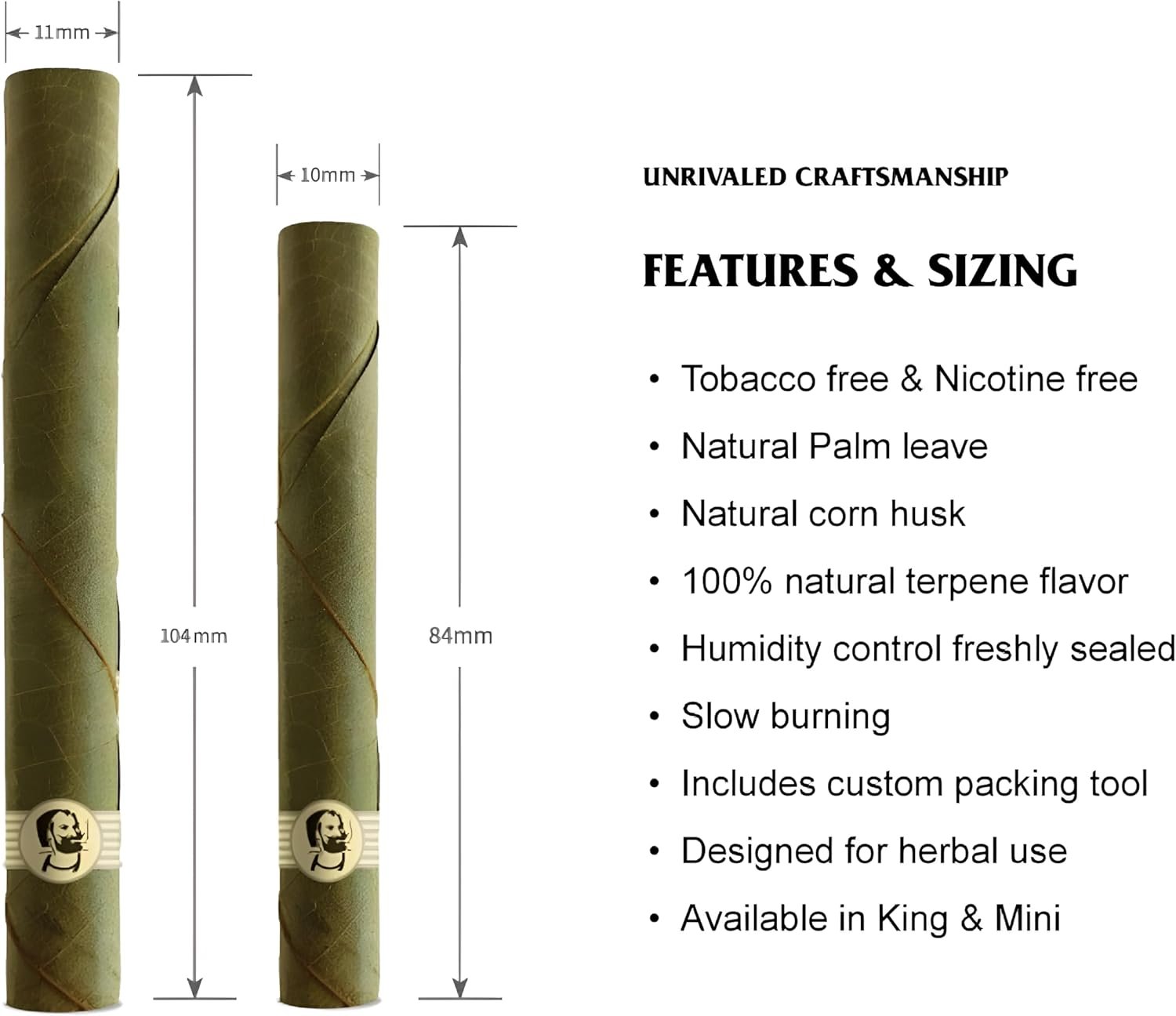 [SLOW BURNING LEAF]: Our ZIG-ZAG Naturally Slow-Burning Palm Leaf design ensures a longer-lasting, more enjoyable session compared to traditional alternatives Combines centuries-old natural materials with modern craftsmanship for an unmatched smoking experience